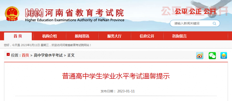 你們(men) 好!疫霾終散去,和氣作春妍。歲末年初,我們(men) 將迎來新年第一次大考,河南省2021級普通高中學生學業(ye) 水平考試於(yu) 1月12日至14日進行。開考前夕,我們(men) 想提醒同學們(men) 注意以下事項: