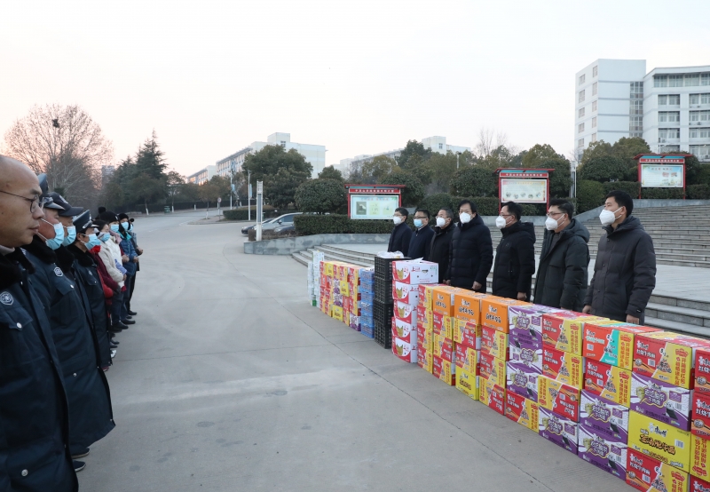 校領導先後來到湖濱校區和崇文校區值班點看望慰問在崗職工並送上慰問品。華小鵬代表校黨(dang) 委、行政和全體(ti) 教職員工向堅守崗位的教職工及其家人致以誠摯的問候,對他們(men) 愛崗敬業(ye) 、無私奉獻的精神給予高度的讚揚,向春節期間堅守崗位保障學校平安穩定、正常運轉所付出的辛勤努力表示衷心的感謝。同時,也希望大家提高責任意識、安全意識,切實將校園安全、服務保障等工作要求和措施落實到位,確保春節假期校園安全穩定和諧。