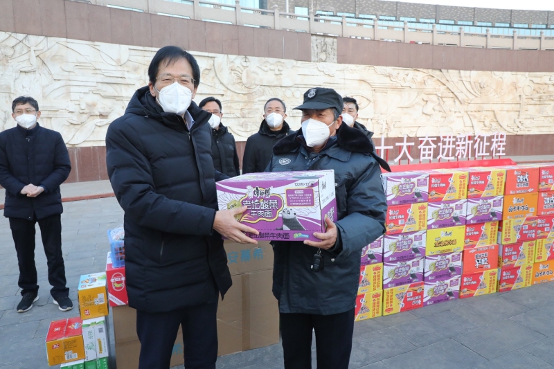 華小鵬為(wei) 崇文校區堅守崗位的職工代表送上慰問品