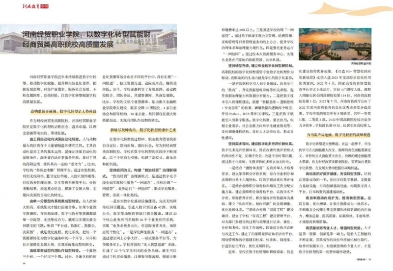 作為(wei) 財經商貿類高職院校,河南經貿職業(ye) 學 院堅定數字化轉型的必勝信念,追求卓越,以理 念創新帶動實踐、帶動發展。