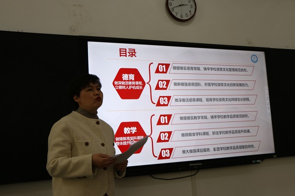 會(hui) 上,學校黨(dang) 總支副書(shu) 記彭錦輝、副校長王磊、徐劉明和秦俊瑩分別就自己主管的黨(dang) 建工作、辦公室工作、中小學部教育教學工作做了細致解讀,然後中小學部分組對學校各部門工作計劃的調整、修訂征求了與(yu) 會(hui) 同誌的意見和建議,最後學校黨(dang) 總支書(shu) 記、校長曹軍(jun) 做了總結發言。曹軍(jun) 校長首先介紹了為(wei) 凝心聚力、提前謀劃好新學期各項工作,學校領導幾天前就開始忙碌,各自在梳理、回顧上學年工作的基礎上,圍繞學校辦學理念,融合了部門相關(guan) 領導的集體(ti) 智慧和分管領導的學習(xi) 成果、深度思考,撰寫(xie) 出了高質量的部門工作計劃,為(wei) 新學期好的開局打下了堅實基礎。接著,他圍繞謀劃、落實和方法講了工作謀劃吐故納新、工作落實突飛猛進、工作方法突圍而出三點具體(ti) 意見,要求大家在工作方式上做到眼高、手低、心平,對今後三年的“做內(nei) 涵,謀長遠”的辦學宗旨及延伸出的“建設學術型學校”的終極目標做了細致詮釋,啟發大家從(cong) 改變心態和改變思維入手去“改變自己”,用“我的問題我解決(jue) ,我的問題能解決(jue) ”的成長型思維模式,去應對一切工作問題,從(cong) 而保障學校的各項工作的有力、有序、精準、高效,以爭(zheng) 先進位的良好態勢,促成學校“做內(nei) 涵,謀長遠”的辦學宗旨的堅實落地。