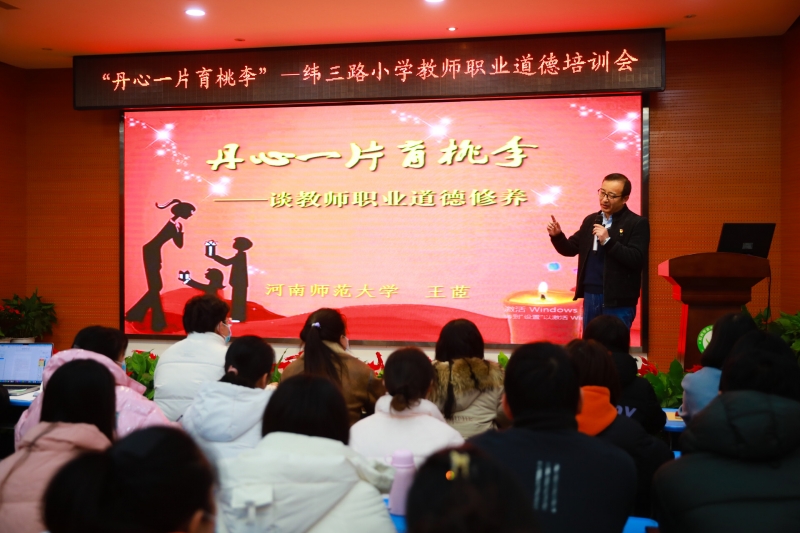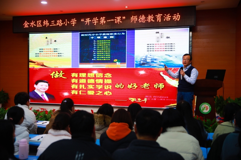 百年大計,教育為(wei) 本;教育大計,教師為(wei) 本。2023 年是黨(dang) 的二十大開局之年,為(wei) 深入學習(xi) 貫徹習(xi) 近平總書(shu) 記關(guan) 於(yu) 師德師風係列重要講話精神,落實“為(wei) 黨(dang) 育人,為(wei) 國育才”的精神,金水區緯三路小學於(yu) 2023年2月7日下午,組織全體(ti) 教師進行師德師風培訓。
