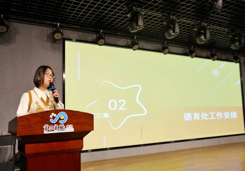 德育處主任馮(feng) 華從(cong) 加強班主任隊伍建設,落實五育並舉(ju) ,開展多彩活動三方麵展開,強調新學期要做好勞動教育、社團發展、閱讀工程和文明班級考評等重點工作,號召大家一起迎接新學期的機遇與(yu) 挑戰。辦公室副主任錄娜從(cong) 疫情防控、物品保障、校園安全等方麵進行強調,表示新學期“大管家”繼續為(wei) 師生做好服務。
