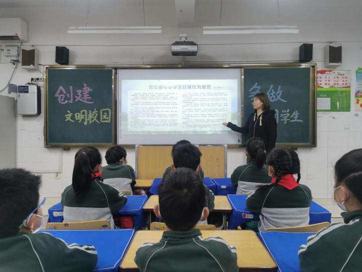 各班又通過召開主題隊會(hui) 對學生進行宣傳(chuan) 教育活動,在班主任的帶領下,全體(ti) 學生齊背社會(hui) 主義(yi) 價(jia) 值觀內(nei) 容,並再次重溫了《河南省中小學生日常行為(wei) 規範》、《中小學生守則》,明確了規範學生行為(wei) 、加強養(yang) 成教育對促進校園文明的重要性。學生們(men) 結合自身生活實際,開展批評與(yu) 自我批評,查找自身存在的問題和不足。