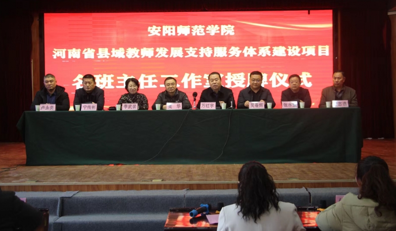 2月16日上午,安陽師範學院河南省縣域教師發展支持服務體(ti) 係建設項目名班主任工作室授牌儀(yi) 式在扶溝縣實驗小學舉(ju) 行,安陽師範學院繼續教育學院院長吳華,安陽師範學院數學與(yu) 統計學院副院長、首席教授李武裝,扶溝縣教體(ti) 局黨(dang) 組書(shu) 記、局長萬(wan) 紅宇,黨(dang) 組成員、副局長吳春輝、寧傳(chuan) 斌及有關(guan) 負責同誌出席儀(yi) 式。
