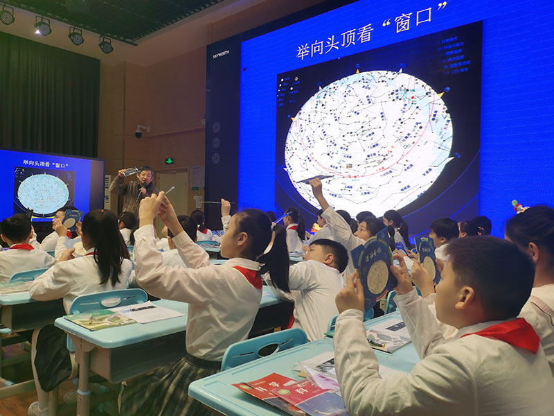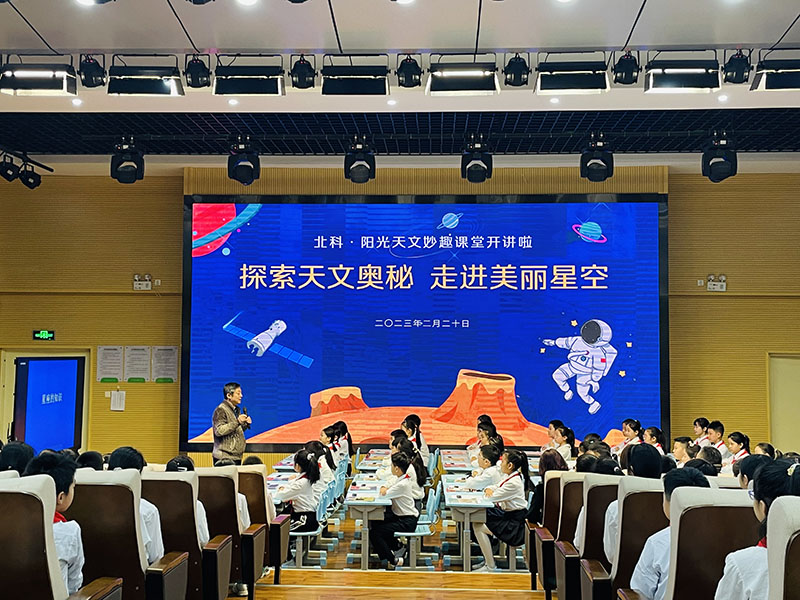 2023年2月20日下午,鄭州市中原區陽光小學邀請北京天文館高級工程師、首席科普專(zhuan) 家、中國天文學會(hui) 普及工作委員會(hui) 委員、北京天文學會(hui) 理事——寇文老師為(wei) 學生講授天文啟蒙知識《探索天文奧秘 走進美麗(li) 星空》。