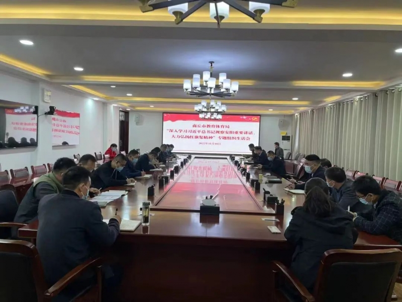 商丘市教體(ti) 局召開專(zhuan) 題組織生活會(hui) ,要求各級黨(dang) 員幹部深刻領會(hui) 習(xi) 近平總書(shu) 記的重要講話精神,做到知行合一,貫徹落實到推動教育體(ti) 育發展各方麵、全過程。
