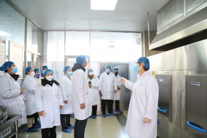 家長們(men) 更換服裝進入衛星廚房,近距離參觀食堂從(cong) 業(ye) 人員規範的操作及學生午餐的製作流程,體(ti) 驗“舌尖上的黃二”。在參觀中,家長代表們(men) 了解到學校食堂的經營模式、進貨渠道、人員管理等詳細情況,看到了衛星廚房內(nei) 部各類炊用具有名有家,色標齊全清楚,擺放整齊有序,索證、台賬等憑證記錄清晰完整,食堂員工分工明確,從(cong) 驗菜、烹飪、分裝、清洗、消毒、留樣、運送等,各個(ge) 方麵的操作都規範衛生,專(zhuan) 業(ye) 有素。