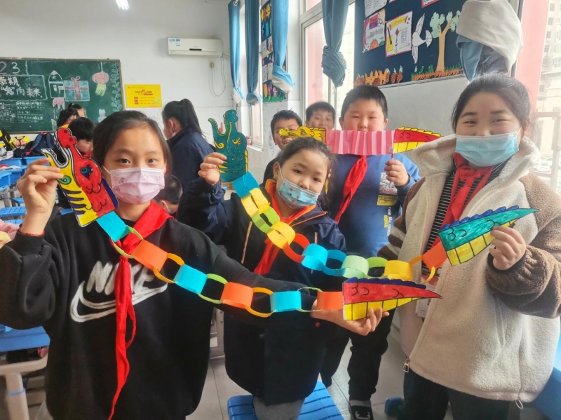 為(wei) 提升學生對中華民族的認同感和自豪感,讓民俗文化在傳(chuan) 承中煥發生機與(yu) 活力,學校還組織三年級學生開展了“二月二,龍抬頭,唱童謠,誦經典”活動,增加了節日的喜慶。