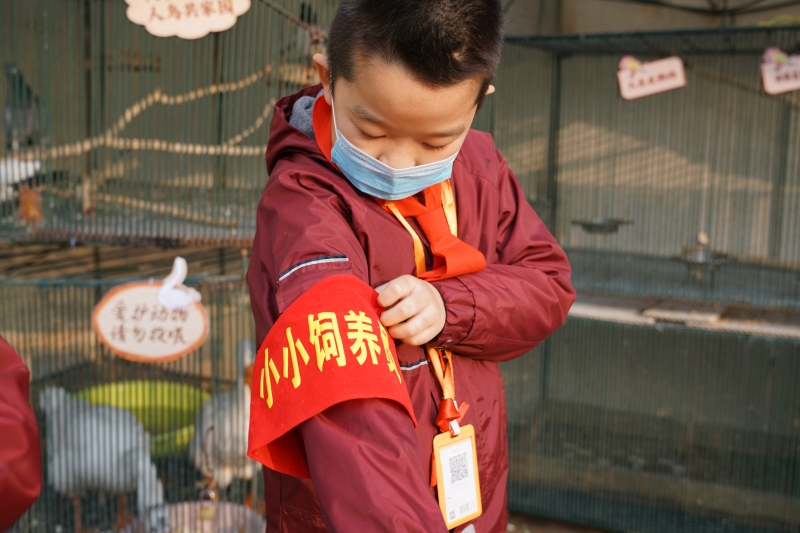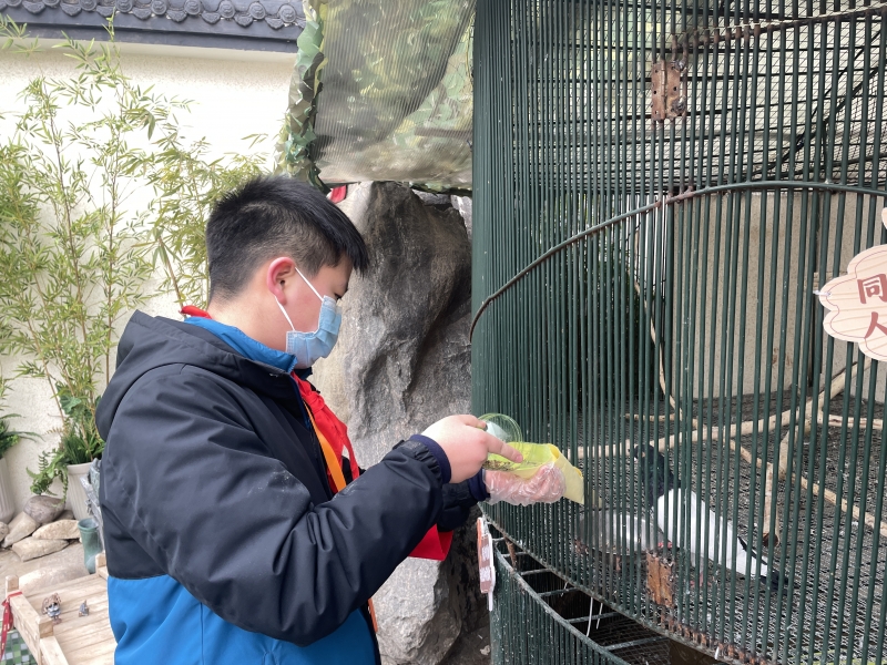 周一清晨,“小小飼養(yang) 員”們(men) 帶著精心準備好的食材早早來到學校,帶上紅袖箍,將食物交給飼養(yang) 員爺爺,學習(xi) 、觀看食物製作、攪拌的過程,為(wei) 水盆換水,自製小漏鬥為(wei) 鴿子喂食等,在為(wei) 動物朋友們(men) 帶來美食的同時,無微不至地照顧他們(men) ,滿滿愛意流露心田。同學們(men) 沉浸式地體(ti) 驗飼養(yang) 員的工作,與(yu) 小動物親(qin) 密接觸,感受著勞動教育的美好。