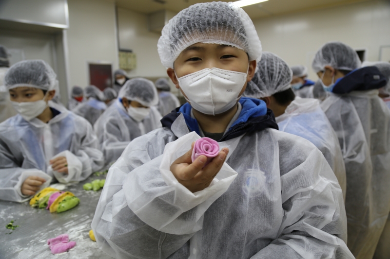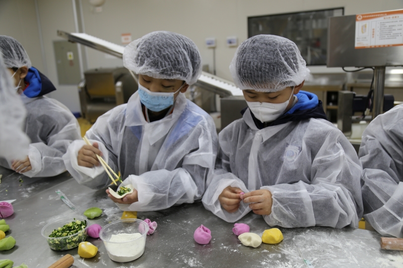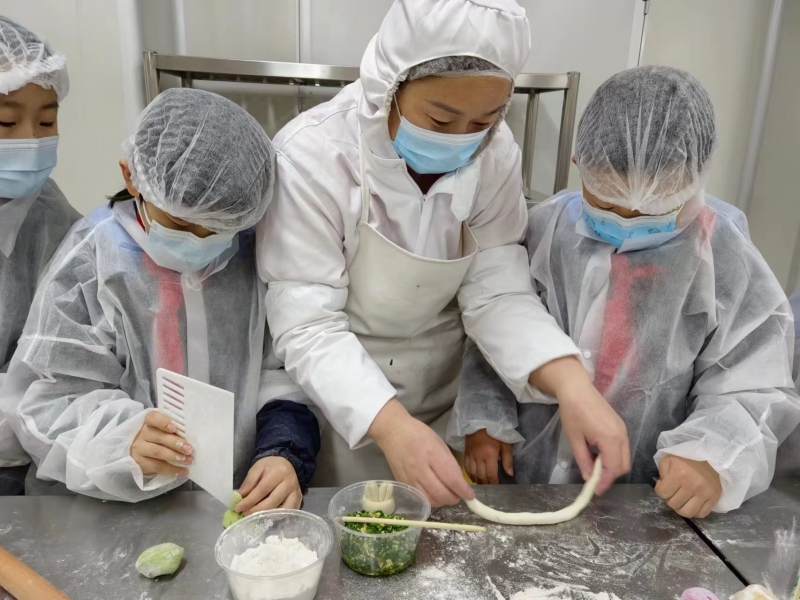 瞧,孩子們(men) 穿戴整齊,洗手消毒,在各位麵點師的帶領下,迫不及待地走進了操作間,搖身一變,成了一個(ge) 個(ge) “小小麵點師”。可千萬(wan) 別小看了這看似簡單的花樣麵點,要想做好它們(men) ,可真不是一件容易的事。同學們(men) 在專(zhuan) 業(ye) 麵點師的指導下,從(cong) 認識各色麵團、各種工具開始,到了解製作簡單麵點的步驟,再到親(qin) 手參與(yu) 設計、製作花樣麵點,各個(ge) 卯足了勁兒(er) ,認真聽、用心記、反複練,不一會(hui) 兒(er) 功夫,栩栩如生的小兔子、精美漂亮的玫瑰花、白肚綠邊的翡翠餃子、憨態可掬的各種小動物擺滿了案台……