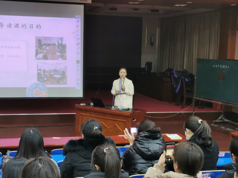 第二個(ge) 階段是教研點評。首先由執教教師針對所執教課例進行說課和反思,陳老師以“激發興(xing) 趣,點燃閱讀火焰”為(wei) 主題,對數學閱讀導讀課進行了簡單的介紹,強調“導讀”是引領閱讀的意思,數學閱讀導讀課的核心是“激趣啟思”。接著是由觀摩教師提出自己的困惑和思考,其中名師李靜表示:從(cong) 孩子們(men) 的整體(ti) 反應就可以感受到數學閱讀的魅力,但從(cong) 學生們(men) 的表達也深刻的體(ti) 會(hui) 到引領孩子們(men) 走進數學閱讀的世界迫在眉睫。最後由中原名師宋君做點評和指導,宋校長先是指出了這次課例的優(you) 點和不足之處,接著以蘇霍姆林斯基的一句話:“不會(hui) 閱讀的學生是潛在的差生”,來強調數學閱讀的重要性,指出閱讀是數學學習(xi) 的主軸和核心,閱讀力就是學習(xi) 力。在開展數學閱讀課程時一定要明確“教什麽(me) ”和“怎麽(me) 教”,要始終把學生放在課堂的正中央,要能發掘學生的興(xing) 趣點和困惑點,幫助學生在數學閱讀中獲得學習(xi) 數學的方法和動力,促進核心素養(yang) 真正落地生根。