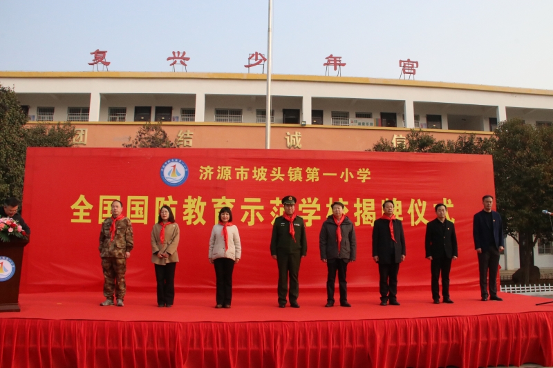 2月23日,在濟源市坡頭鎮第一小學校園裏,正在舉(ju) 行一場特別的揭牌儀(yi) 式。濟源示範區人民武裝部政委趙金良、教體(ti) 局局長程盛等參加儀(yi) 式。原來,經教育部和中央軍(jun) 委政治工作部認定,該校被授予“全國國防教育示範學校”榮譽稱號。