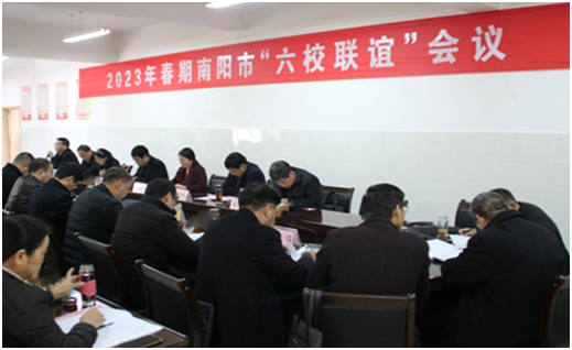 學習(xi) 讓人提高,交流催人奮進。由新野一高、唐河一高、南陽市五中、南陽市二中、鎮平一高、鄧州一高聯盟舉(ju) 行的“六校聯誼”交流會(hui) 3月4日上午在新野一高隆重舉(ju) 行。六校校長、業(ye) 務副校長、高三年級主任、教務主任參加會(hui) 議。會(hui) 議由新野一高黨(dang) 總支書(shu) 記錢其德主持。