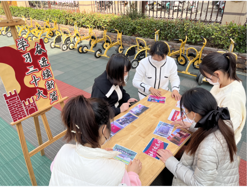在黨(dang) 的二十大精神學習(xi) 活動中,金水區第四幼兒(er) 園黨(dang) 支部副書(shu) 記畢衛華首先為(wei) 教職工送上溫暖的節日祝福和美好期許,希望老師們(men) 堅守初心,成為(wei) 幼兒(er) 成長路上的引路人。金水四幼黨(dang) 員教師於(yu) 丹丹向教師們(men) 介紹並解讀了黨(dang) 的二十大報告中必須要知道的“關(guan) 鍵詞”,號召四幼的教師們(men) 做到自信自強、守正創新,踔厲奮發、勇毅前行,為(wei) 全麵建設社會(hui) 主義(yi) 現代化國家、全麵推進中華民族偉(wei) 大複興(xing) 而團結奮鬥。隨後,教職工在黨(dang) 支部的安排下觀看紅色電影《紅旗渠》,從(cong) 黨(dang) 的二十大精神中尋求黨(dang) 的紅色記憶,發揚“自力更生、艱苦創業(ye) 、團結協作、無私奉獻”的紅旗渠精神,在新時代激勵老師們(men) 在教育事業(ye) 中求真務實,真抓實幹。