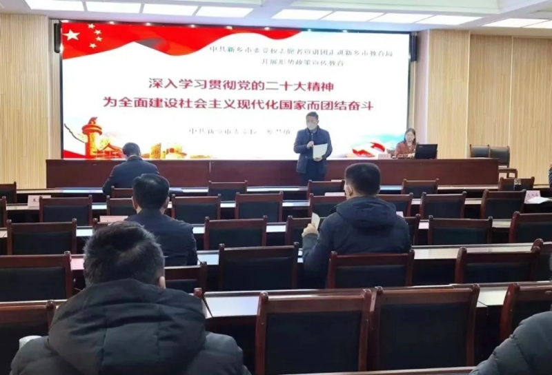 新鄉(xiang) 市教育局邀請新鄉(xiang) 市委黨(dang) 校專(zhuan) 家教授舉(ju) 辦《深入學習(xi) 領會(hui) 黨(dang) 的二十大精神,全麵建設社會(hui) 主義(yi) 現代化強國》等專(zhuan) 題報告會(hui) ,提升黨(dang) 員幹部理論素養(yang) 。開設《學習(xi) 貫徹黨(dang) 的二十大精神大家談》專(zhuan) 欄,組織全體(ti) 黨(dang) 員參加河南黨(dang) 員教育“雲(yun) 課堂”(黨(dang) 的二十大專(zhuan) 題網絡培訓班)。舉(ju) 辦“學習(xi) 二十大、永遠跟黨(dang) 走、奮進新征程”主題“雲(yun) 團課”,開展線上“學習(xi) 二十大精神、爭(zheng) 做出彩先鋒”演講比賽,線上接力誦讀黨(dang) 的二十大原文和黨(dang) 的二十大金句等活動。組織黨(dang) 的二十大精神專(zhuan) 題測試,以考促學,確保學習(xi) 實效。