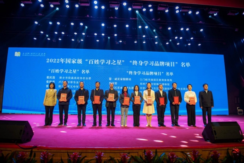 開幕式上,成光琳宣讀2022年國家“百姓學習(xi) 之星”和“終身學習(xi) 品牌項目”表彰決(jue) 定和2022年河南省“百姓學習(xi) 之星”和“終身學習(xi) 品牌項目”表彰決(jue) 定。河南共有5人獲評國家級“百姓學習(xi) 之星”,5個(ge) 項目被評選為(wei) “終身學習(xi) 品牌項目”,93人獲評河南省“百姓學習(xi) 之星”,62個(ge) 單位獲評河南省“終身學習(xi) 品牌項目”,學習(xi) 之風日益濃厚。