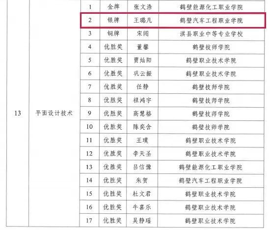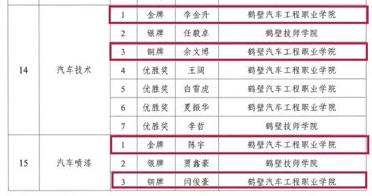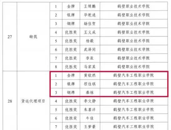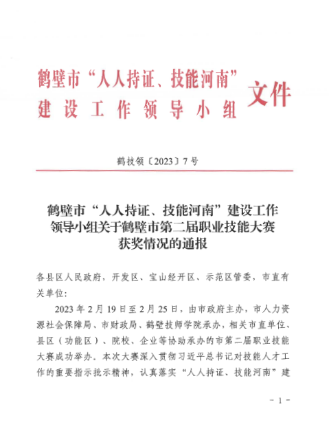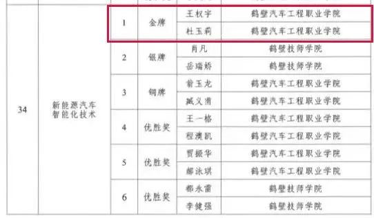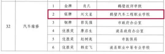 博學善思揚學風,自強不息建新功。近日,鶴壁市“人人持證、技能河南”建設工作領導小組下發了關(guan) 於(yu) 鶴壁市第二屆職業(ye) 技能大賽獲獎情況的通報,鶴壁汽車工程職業(ye) 學院選手在此次比賽中以充分的準備、穩定的心態、高超的水平沉著應對,最終學院榮獲突出貢獻單位、優(you) 秀組織獎,參賽選手榮獲金牌6枚、銀牌4枚、銅牌8枚,優(you) 勝獎45人、優(you) 秀裁判5人、優(you) 秀工作者5人、優(you) 秀指導教師8人的優(you) 異成績。