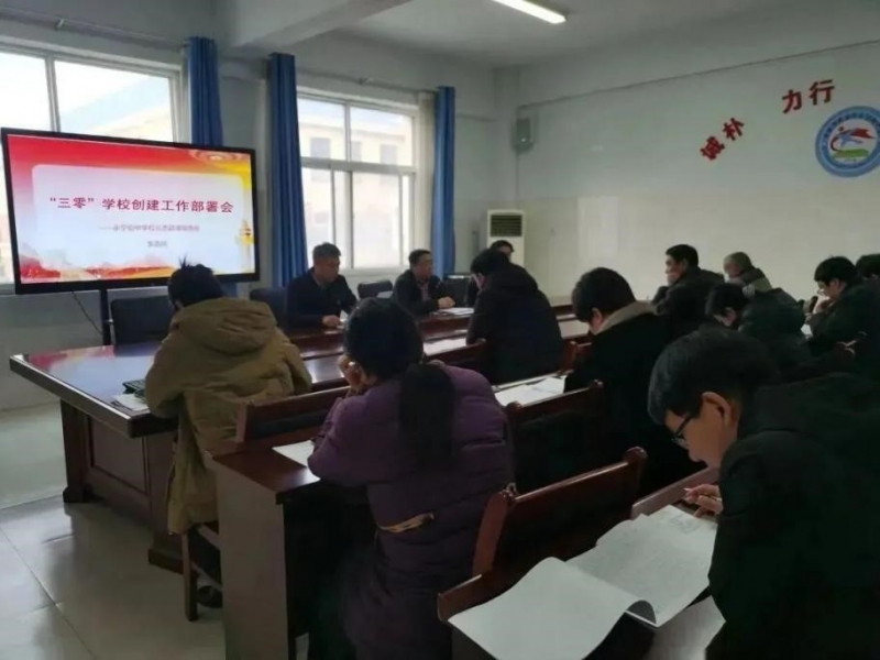 學校召開“三零”學校創建活動部署會(hui) 議,成立工作領導小組,做到分工明確,責任到人,保證創建工作有序推進,同時研究製定了《永寧街中學“三零”學校創建工作方案》,努力營造一個(ge) 安全、文明、健康的育人環境。
