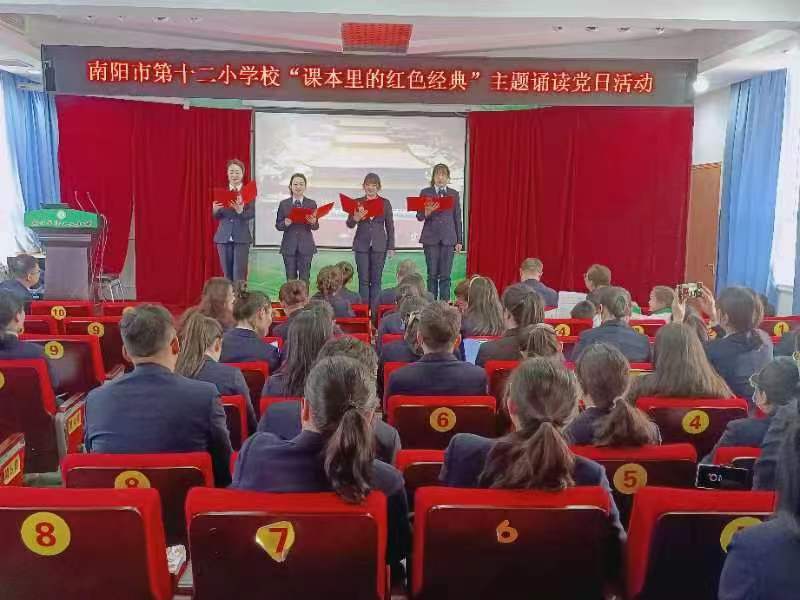 為(wei) 進一步弘揚英烈精神、厚植愛國情懷,3月31日,在清明節來臨(lin) 之際,南陽市第十二小學校黨(dang) 總支創新黨(dang) 日活動形式,開展“課本裏的紅色經典”主題誦讀黨(dang) 日活動,重溫中國共產(chan) 黨(dang) 100多年來走過的艱辛曆程和動人故事。