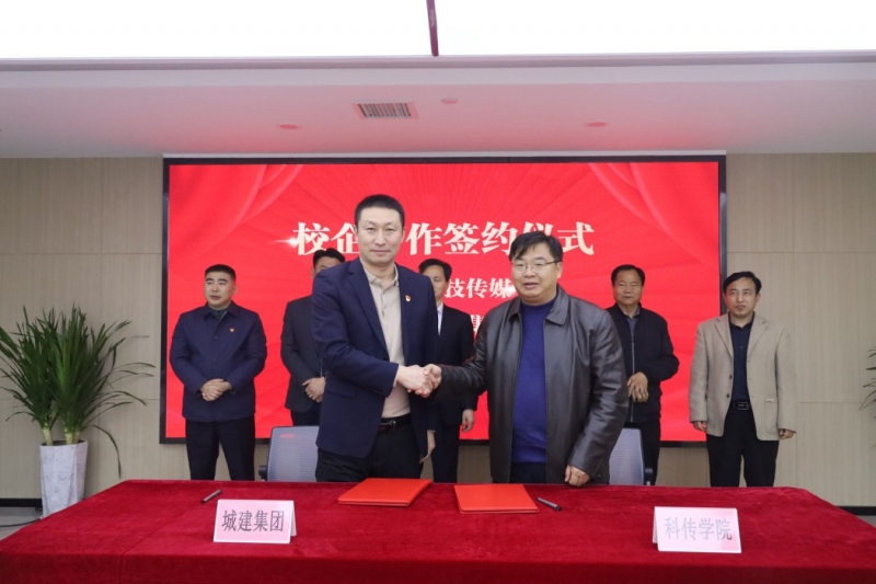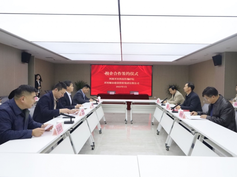 3月31日下午,河南開封科技傳(chuan) 媒學院與(yu) 開封城市建設投資集團有限公司校企合作簽約儀(yi) 式成功舉(ju) 行。副校長王天仕、商學院院長徐春光、商學院黨(dang) 總支書(shu) 記王清智以及商學院教師代表等人,及開封城建集團董事長辛軍(jun) 海、總經理倪銀偉(wei) 以及各職能部門主管領導出席儀(yi) 式。