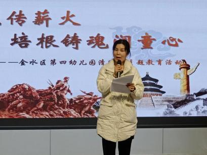 序春草綠,又到清明。為(wei) 了全麵貫徹黨(dang) 的二十大精神,以培育和踐行社會(hui) 主義(yi) 核心價(jia) 值觀為(wei) 主線,進一步加強全體(ti) 師幼的愛國主義(yi) 教育,把革命先烈的精神內(nei) 化於(yu) 心、外化於(yu) 行,2023年4月4日,金水區第四幼兒(er) 園開展了“緬懷先烈傳(chuan) 薪火,培根鑄魂潤童心”清明節主題活動,特邀河南省新時代百姓宣講員、鄭州新聞廣播電視台首席主持人、鄭州市宣講先進個(ge) 人張明進行“弘揚傳(chuan) 統文化,庚續紅色血脈”的宣講,助力孩子們(men) “扣好人生第一粒扣子”,爭(zheng) 做民族複興(xing) 大任的新時代接班人。