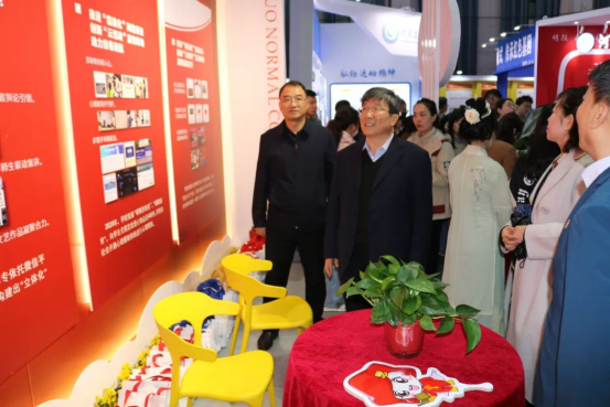 4月3日至4日,全省普通高等學校學生工作優(you) 秀成果展同時在洛陽師範學院體(ti) 育館舉(ju) 行,全省高校學工代表現場參觀學習(xi) 。焦作師範高等專(zhuan) 科學校獲獎學生工作成果“雲(yun) 思政”在現場展示,分別代表微思政、資助、心理工作的“思思”“暖暖”“星星”三個(ge) 卡通人物受到師生的喜愛和好評,現場氣氛熱烈。