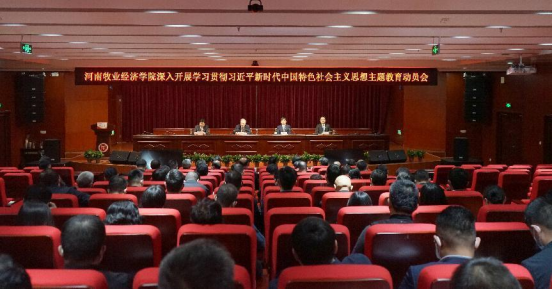 4月9日,河南牧業(ye) 經濟學院在龍子湖校區圖書(shu) 館一樓報告廳召開深入開展學習(xi) 貫徹習(xi) 近平新時代中國特色社會(hui) 主義(yi) 思想主題教育動員會(hui) 。省委第二十八巡回指導組組長、河南工程學院原黨(dang) 委書(shu) 記劉湘玉、副組長駐馬店市政協副主席史愛民及指導組成員,校黨(dang) 委書(shu) 記穆瑞傑、校長羅士喜及領導班子成員,學校各二級單位主要負責同誌,各民主黨(dang) 派主委代表參加了動員會(hui) 。會(hui) 議由校長羅士喜主持。