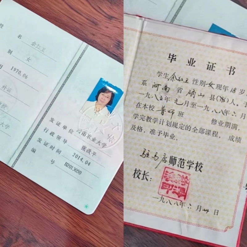 “這一年的除夕,外麵鞭炮齊鳴的時候,我還守在老式的錄音機旁,一遍一遍地練習(xi) 聽力。值得欣慰的是,1995年我參加成人高招考試,被河南教育學院英語教育專(zhuan) 業(ye) 錄取。”餘(yu) 紅衛表示,在鄭州兩(liang) 年的求學,令她開闊了眼界,也結識了一批為(wei) 了夢想奮發學習(xi) 的同學,還考取了BEC2級(劍橋商務英語)證書(shu) 。