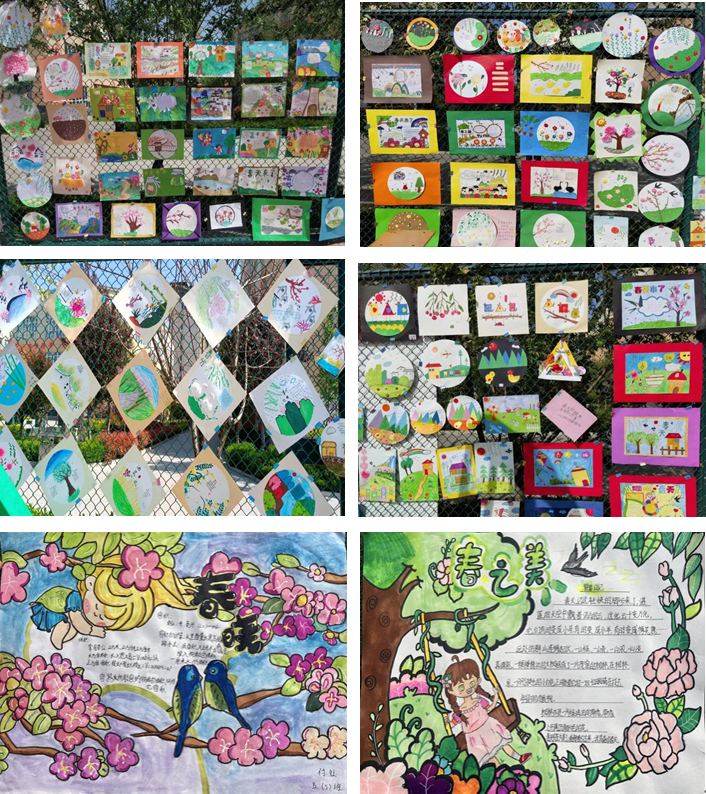 低年級學生側(ce) 重搜集描寫(xie) 春天的詞語、古詩等,創辦手抄報;中高年級學生側(ce) 重寫(xie) 賞春、植樹、放風箏習(xi) 作,展現語文教學之文字之美。孩子們(men) 觸摸春天,組合製作風箏圖形、繪製思維導圖、創新設計“春天裏的數學”。學生在老師指導下整理描寫(xie) 春天的英語單詞,圖文並茂描繪春天——充滿生機與(yu) 活力。美術、音樂(le) 老師精心構思,積極引導孩子們(men) 與(yu) 生活鏈接,用雙手繪就春天,用聲音讚美春天,留下“尋春、踏春、賞春、讚春”的特色足跡。