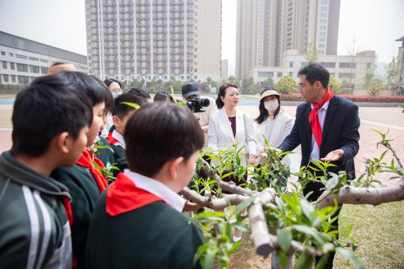 啟動儀(yi) 式上,金水區農(nong) 科路小學教育集團黨(dang) 總支書(shu) 記、校長孫永亮致歡迎辭,介紹本次活動的基本情況,並對社會(hui) 各界的大力支持表示感謝。省農(nong) 科院直屬單位黨(dang) 委專(zhuan) 職副書(shu) 記、文明辦主任黎世民在講話中表示,將一如既往做好服務,進一步支持學校發展。區領導趙德武代表區政府對活動的順利啟動表示祝賀,他指出,省農(nong) 科院和農(nong) 科路小學共同開展的“農(nong) 業(ye) 科普博士團進校園”活動,開啟科研機構與(yu) 基礎教育合作的新模式,不僅(jin) 充分發揮區域科教資源優(you) 勢,而且為(wei) 培養(yang) 學生勞動精神、科學素養(yang) ,促進學生全麵發展拓寬渠道,必將有效帶動全區學校高品質、內(nei) 涵式發展。隨後,省農(nong) 科院規劃建設處處長連東(dong) 軍(jun) 和孫永亮校長共同揭牌。揭牌儀(yi) 式結束後,與(yu) 會(hui) 領導與(yu) 少先隊員共同栽種桃樹李樹,博士團代表為(wei) 孩子們(men) 授課,新鮮的農(nong) 業(ye) 知識、專(zhuan) 業(ye) 的博士講解、有趣的操作實踐,讓孩子們(men) 樂(le) 在其中。