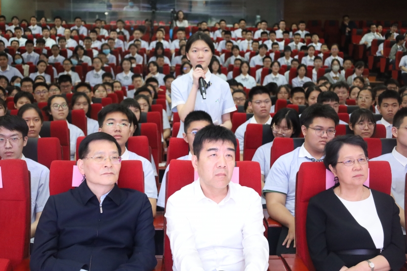 施一公先後介紹了楊振寧、李政道發現宇稱不守恒規律和屠呦呦成功提取青蒿素等案例,激發現場學生對科學探索的興(xing) 趣:“他們(men) 的案例告訴我們(men) ,成功的科學家往往敢於(yu) 質疑、敢於(yu) 嚐試和接受失敗……”