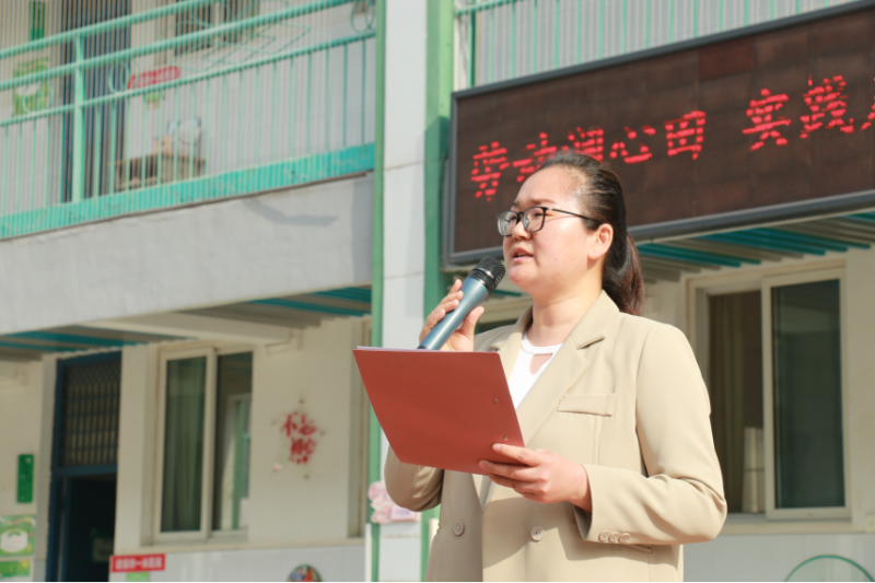 學校黨(dang) 總支書(shu) 記、校長郭豔麗(li) 致辭,她帶領全體(ti) 師生齊誦黨(dang) 的教育方針,強調勞動教育的重要性,並指出學校在校園內(nei) 搭建“豐(feng) 碩園”勞動基地,希望學生們(men) 認真參與(yu) 到種植活動中去,在勞動中收獲果實,收獲能力。德育副主任郝君婷為(wei) 全校學生列舉(ju) 了一份勞動清單,並對勞動基地進行了區域劃分且提出了管理要求。教師代表汪瓊老師和學生代表楊墨溪提出:勞動的人最美麗(li) ,都應該得到我們(men) 的尊重,號召學生要以勞動奉獻為(wei) 榮,身體(ti) 力行,做最美的勞動小達人!