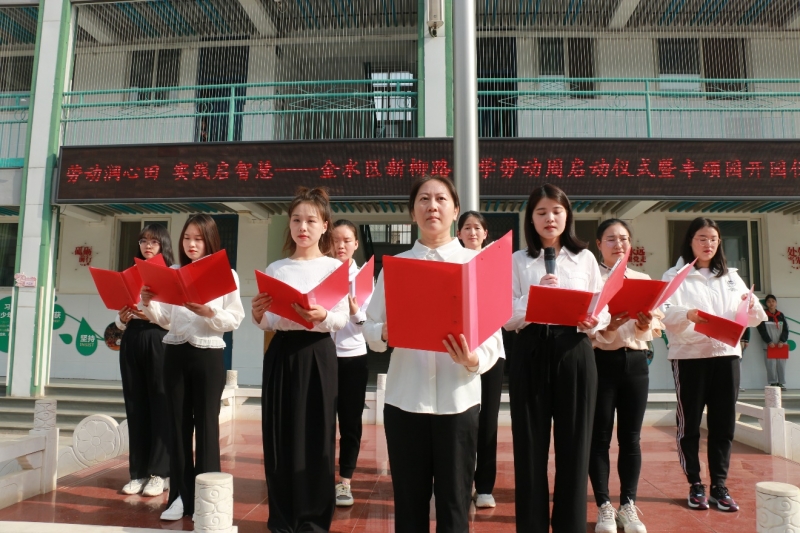 為(wei) 進一步落實“五育融合”,培養(yang) 學生正確的勞動觀念、豐(feng) 富勞動實踐,習(xi) 得勞動技能、鑄就勞動精神,2023年4月17日,金水區新柳路小學舉(ju) 行了“勞動潤心田,實踐啟智慧”勞動周啟動儀(yi) 式暨“豐(feng) 碩園”開園儀(yi) 式。儀(yi) 式在莊嚴(yan) 的國歌聲中拉開帷幕,學生們(men) 穿著整齊的校服,佩戴鮮豔的紅領巾,在莊嚴(yan) 肅穆的氣氛中用標準隊禮致敬國旗。