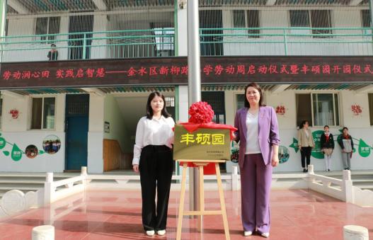 隨後,郭豔麗(li) 校長和勞動項目組組長汪瓊老師共同為(wei) “豐(feng) 碩園”勞動教育實踐基地揭牌,並寄予無限希望。副校長李莉為(wei) 豐(feng) 碩園聘請經驗豐(feng) 富的校內(nei) 指導老師,引領學生科學種植灌溉。德育處副主任範楠楠、郝君婷為(wei) 豐(feng) 碩園勞動基地授年級區域牌,使同學們(men) 在自己的勞動區域進行種植、管理和收獲。