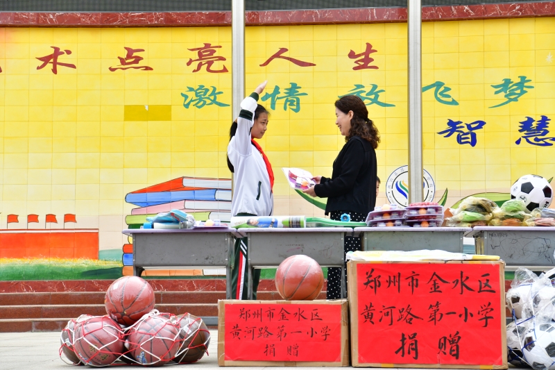 隨後,在校長武勝龍的主持下進行了物資捐贈儀(yi) 式,常書(shu) 記代表黃河路第一小學全體(ti) 師生為(wei) 淅川思源學校的孩子們(men) 贈送了各式各樣的體(ti) 育用品,學生們(men) 拿著羽毛球、跳棋、跳繩、籃球、足球等欣喜不已。常書(shu) 記說:“學校將與(yu) 兄弟學校繼續進行多種形式支援支教活動,真誠協作,攜手前行,共同奔赴新時代高質量育人的新篇章。”
