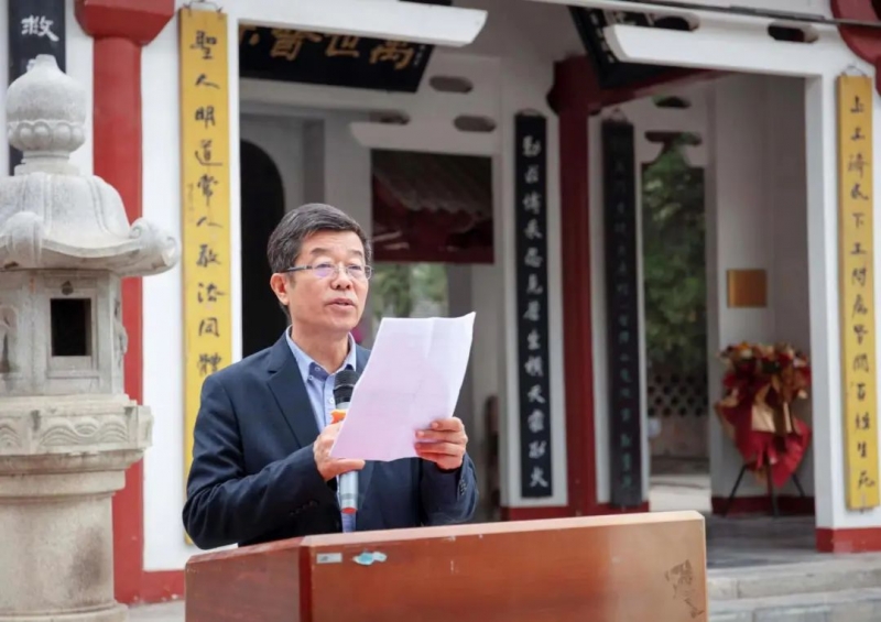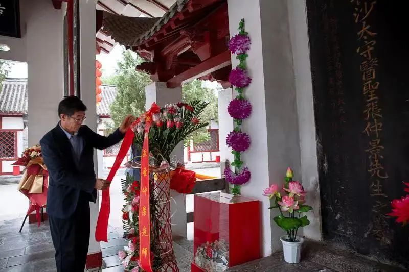 在古樸悠揚的音樂(le) 中,全體(ti) 人員肅穆奏唱《醫聖頌》。張國良代表南陽醫專(zhuan) 向醫聖敬獻花籃,全體(ti) 人員拜謁仲景先師。