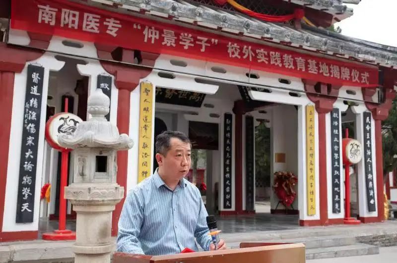 4月18日上午,南陽醫學高等專(zhuan) 科學校“仲景學子”校外實踐教育基地揭牌儀(yi) 式暨拜謁醫聖主題教育活動在張仲景博物院舉(ju) 行。