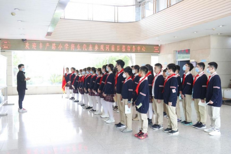 下午兩(liang) 點半,豐(feng) 產(chan) 路小學師生準時到達河南日報印務中心,跟隨印務中心經理魏冉,開啟了“印刷廠奇妙遊”。首先,魏冉經理向師生們(men) 介紹了《河南日報》的發展曆程,從(cong) 1949年6月1日正式創刊到現在已有七十多年的曆史。師生們(men) 了解到,經過七十多年的發展,河南日報印務中心已成為(wei) 中西部地區集印前製作、報紙印刷、商業(ye) 印刷、印後加工和發行服務為(wei) 一體(ti) 的綜合性印刷企業(ye) 。