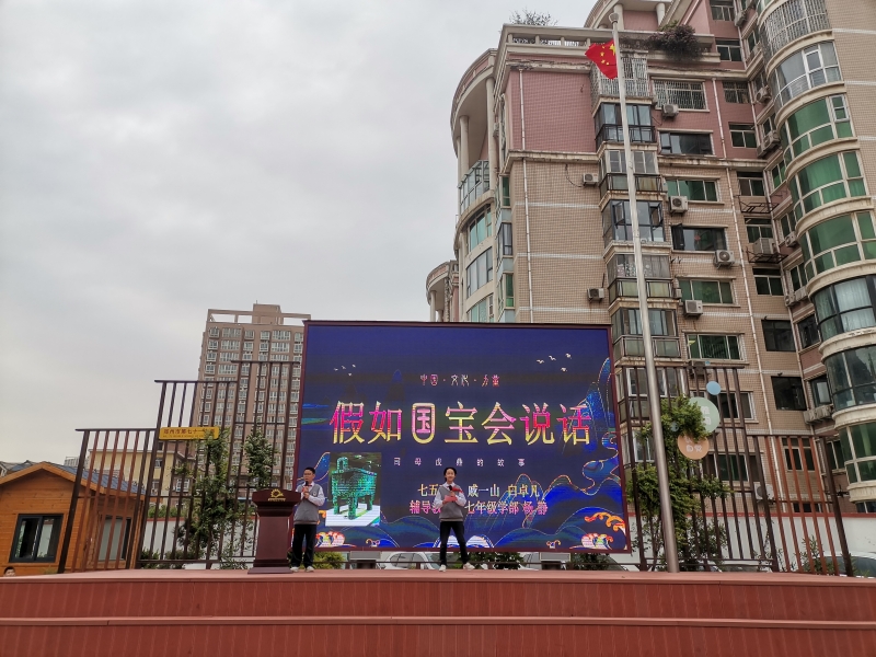 在文以化人——文化與(yu) 傳(chuan) 承篇章,七四班秦藝萌分享語文《春風拂煦來 讀書(shu) 正當時》;七二班閆明派同學分享道法《與(yu) 時代同頻共振》;七五班戚一山和白卓凡同學分享曆史《 “司母戊鼎”的故事》。