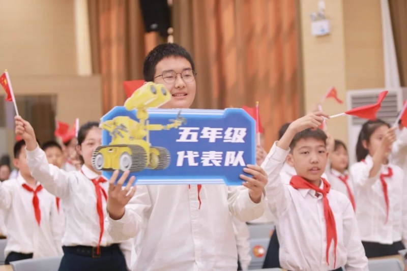 在開幕式上,孩子們(men) 在舞台中央綻放光芒。整齊的動作、嘹亮的口號,年級代表方陣,展現出了緯五路第二小學孩子們(men) 獨特的氣質。各式各樣的機器人吉祥物,彰顯著孩子們(men) 的自信和活力。