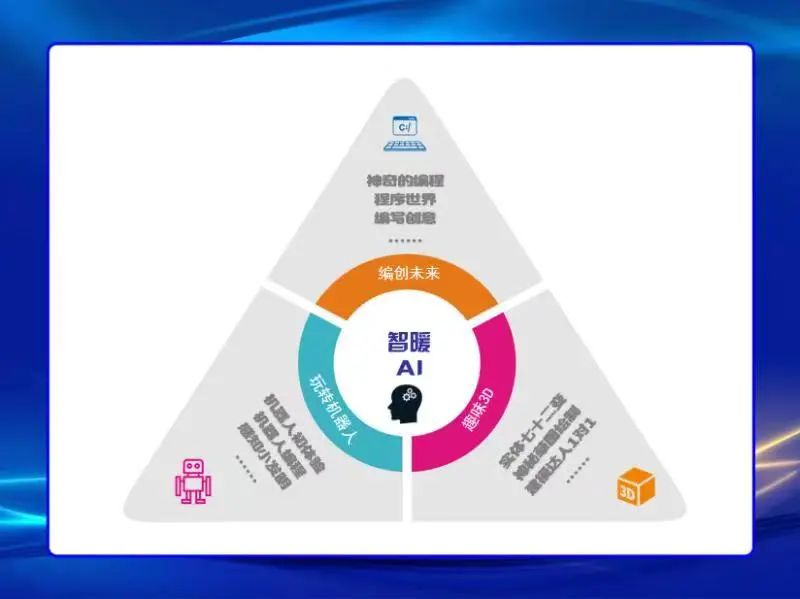 人工智能課程體(ti) 係,打破學科界限,將多種教育相結合,開發拓展了一係列課程,形成“智暖AI”學科課程群。以AI啟智,推出“智暖AI體(ti) 驗坊”活動,讓每一位孩子都能夠親(qin) 身觸摸,深度體(ti) 驗,在科技的海洋裏盡情暢遊。以智暖AI課程為(wei) 切入口,搭建智能階梯,基礎課程與(yu) 體(ti) 驗課程並行,社團課程與(yu) 特色活動輔助,讓學生看見世界,智慧生活,實現“麵向全體(ti) ”“人人參與(yu) ”。
