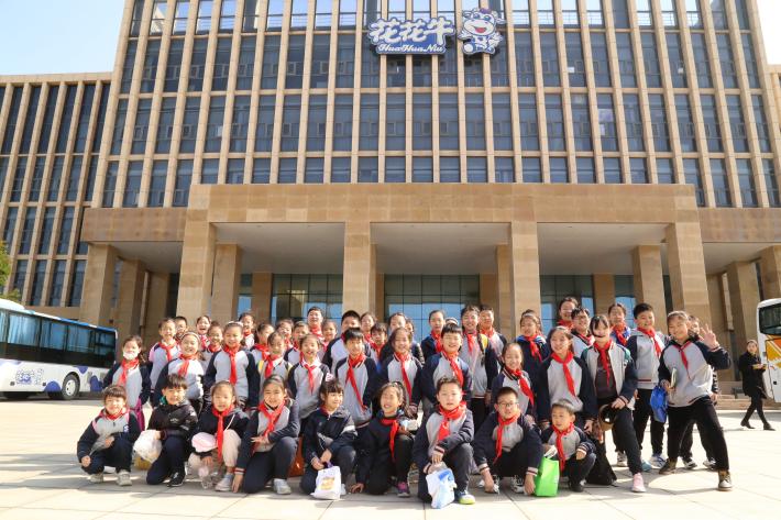 研學初始,學校德育處精心設計了研學日誌,孩子們(men) 帶著未知和好奇興(xing) 高采烈地踏上研學之路。“花花牛基地有奶牛嗎?”“是人工擠奶嗎?”“牛奶是怎麽(me) 裝進盒子裏送到學校的?”孩子們(men) 腦海中的小問號讓路程變得豐(feng) 富多彩,從(cong) 上車的那一刻,空氣中彌漫著探知新奇的欲望。到達花花牛產(chan) 業(ye) 園後,孩子們(men) 先來到展示大廳,通過大屏幕視頻介紹,孩子們(men) 對我們(men) 這個(ge) 河南本土品牌的起源和發展有了大致的了解,有孩子迫不及待地向老師炫耀:“我家天天都喝花花牛,我和它很熟悉!”