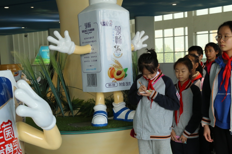 在產(chan) 品展廳,牆麵文化和各種熟悉的包裝展示模型吸引了孩子們(men) 的注意,講解員小姐姐從(cong) 企業(ye) 概況、乳文化大百科、益生菌大冒險、世界乳文化,讓孩子們(men) 大開眼界。隨後,講解員還為(wei) 孩子們(men) 分發了新鮮出爐的酸奶讓孩子們(men) 品嚐。他們(men) 評議著自己最喜歡的包裝和口味,迫不及待地向同伴和老師推薦。