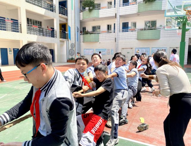 鄭州市金水區工人第一新村小學開展的校園投籃和拔河運動場麵熱烈。參加投籃的選手們(men) 個(ge) 個(ge) 神情專(zhuan) 注,認真把握投籃機會(hui) 。隻見他們(men) 屏息凝神,瞄準球框,雙腳躍起,用力一投,籃球在空中劃出一道美麗(li) 的弧線。拔河比賽哨聲一吹響,現場的氣氛立刻就沸騰起來。參賽的隊員們(men) 半蹲站立、降低重心、奮力向後傾(qing) 斜,使出渾身力氣緊握長繩,憋住了勁往後拉,班級內(nei) 其他同學自發組成拉拉隊,為(wei) 本班隊員呐喊加油。