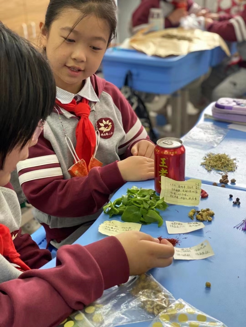 《走進中醫藥》這一勞動課程向學生教授簡單、基礎的中醫藥知識,體(ti) 驗式學習(xi) 中醫藥文化,分為(wei) 打開中醫之門、走進中醫名家、探秘神農(nong) 百草、研旅中醫大學、解鎖藥膳美食五個(ge) 板塊。課程依托《中小學生中醫藥文化課程》這項教材,篩選適合學生了解的中醫知識。通過課堂上的知識普及,再聯係生活中的中醫文化現象,學生對於(yu) 中醫藥知識有了最基本的、係統性的認識。