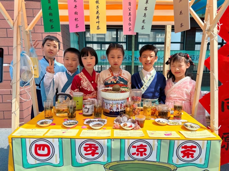 五個(ge) 班級,七大主題,共計推出十個(ge) 攤位,不同主題特色的裝飾,不同主題領域的美食,給前來品嚐鑒賞的師生們(men) 以不同的觀感和味覺體(ti) 驗。光看各個(ge) 攤位的菜單就能想象出這“藥膳”的豐(feng) 富與(yu) 美味:“花園裏的中藥”盡是花中美食,玫瑰餅的酥香甜嫩、山楂糕的酸甜開胃、百合蓮子粥的清甜潤滑、玫瑰鮮花餅的的酥脆精致,讓人不由驚歎花朵真的是可以“吃”的;“果園裏的中藥”講究的是搭配的和諧,山楂的酸得需配上紅棗的甘、碭山梨的甜能中和石榴皮的澀、桑椹的甜能遮蓋酸棗仁的苦;“茶杯裏的中藥”掀起一股“泡茶”風,枸杞菊花、梔子荷葉、枸杞梔子,真是樣樣可搭,加了小冰糖的羅漢果桑葉茅根茶更是成為(wei) “續杯”十五次的新潮飲品;以前聽說“腳下的中草藥”就是要“泡腳”,到了現場才知道,腳下的“艾葉”還可以做成消熱甜品“艾仙草”、暖胃點心“艾青團”、青黃拚接“艾蛋卷”,濃濃的艾香裹著濃濃的“艾”意讓你忍不住就想把“艾”帶回家;“糧倉(cang) 裏的中藥”主推五穀雜糧常見美食,口感豐(feng) 富的芝麻丸、色味俱全的綠豆糕、清淡爽口的山藥紫薯糕、造型美觀的杏仁酥,焦香酥脆的油炸花生幾乎人手一份,尋常五穀在藥童們(men) 的手裏變得那麽(me) 可口可愛;“廚房裏的中草藥”以“小”見大學問多,小小佐料更增濃鬱菜香,樣樣展品都是廚房必不可缺;“餐桌上的中藥”集聚了中華美食的經典菜品,涼拌黃瓜清脆爽口、蟲草排骨湯香飄滿園、藥膳雞湯鮮嫩醇厚,勾起的不止有“遊客們(men) ”的味蕾,還有其他攤位藥童們(men) 的口水。