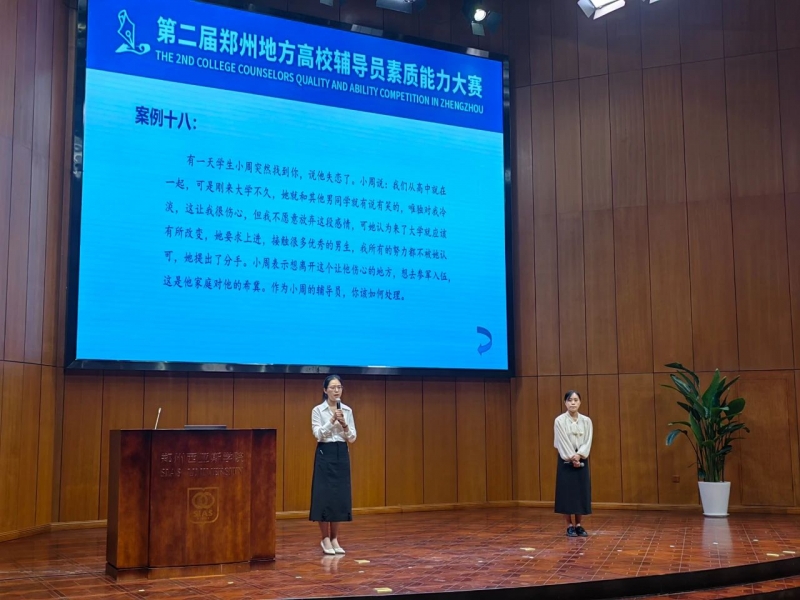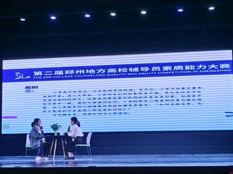 本屆輔導員素質能力大賽由鄭州市高校擇優(you) 推薦輔導員代表參賽,設置基礎知識、案例分析、談心談話三個(ge) 考察環節,全麵綜合考察輔導員的工作能力和綜合素養(yang) ,以賽代訓,推進輔導員隊伍建設,提高學生思想政治教育工作水平。比賽中,嵩山少林武術職業(ye) 學院輔導員張曉丹理論基礎紮實,工作能力過硬,從(cong) 容自信,宣傳(chuan) 闡述習(xi) 近平新時代中國特色社會(hui) 主義(yi) 思想、黨(dang) 的二十大精神等理論政策,講述剖析學生工作案例,獲得了各環節評委的一致肯定,一路領先,總積分名列前茅,榮獲特等獎!