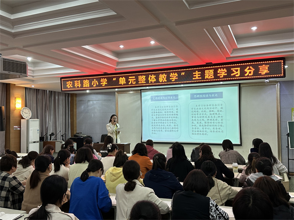 為(wei) 進一步拓寬教師教學視野,發揮骨幹輻射引領作用,達到資源共享、共同成長的目的,2023年5月4日,金水區農(nong) 科路小學全體(ti) 教師齊聚電教室,共同精研單元整體(ti) 教學,進行“單元整體(ti) 教學”主題分享會(hui) ,齊東(dong) 曉、馮(feng) 亞(ya) 丹兩(liang) 位教師分別從(cong) 小學數學和小學語文兩(liang) 大學科出發,以案例解讀為(wei) 切口,梳理單元教學的實踐路徑。