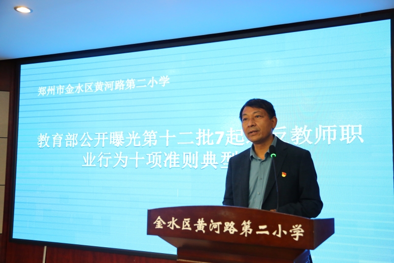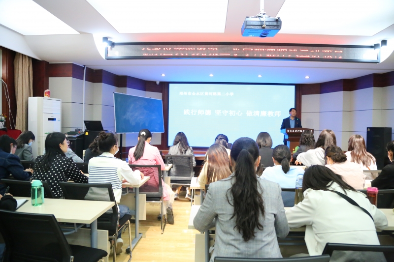 5月8日下午,金水區黃河路第二小學全體(ti) 教師齊聚報告廳,進行了“踐行師德,堅守初心,做清廉教師”師德學習(xi) 教育活動。學校黨(dang) 總支書(shu) 記楊關(guan) 群主持並領學。